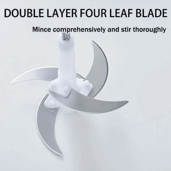 Detachable Stainless Steel Quad Blades: Ensures uniform chopping and easy cleaning.